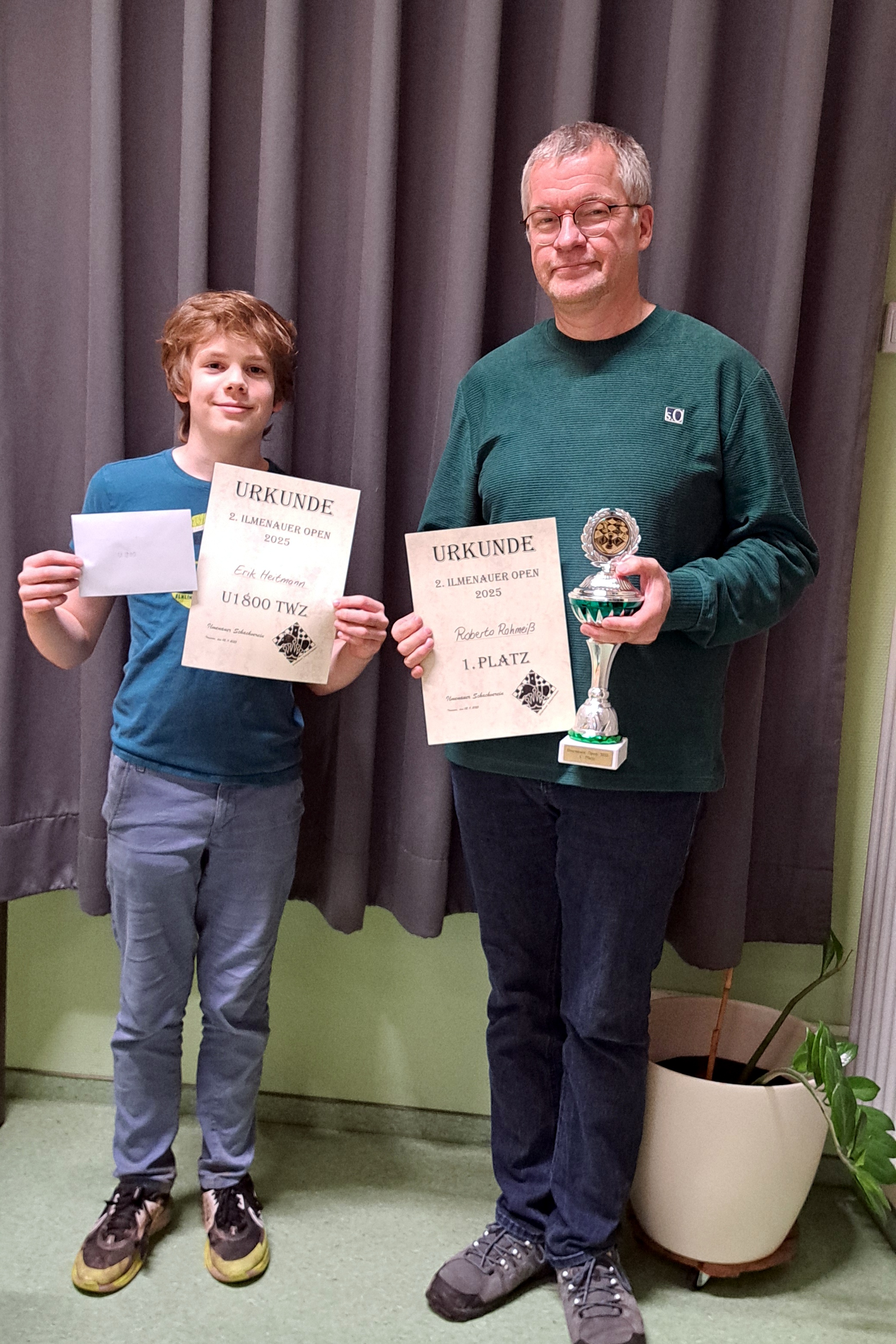 Vom 30.10. bis 2.11.2025 fand (ebenfalls im SFZ) das 2. Ilmenau Open statt - ein Schachturnier offen für alle. Es waren zahlreiche Spieler der Thüringer Landesliga am Start, viele junge Talente, aber auch Spieler aus anderen Bundesländern, gab es doch einiges an Preisgeld und Wertungszahlen zu gewinnen.